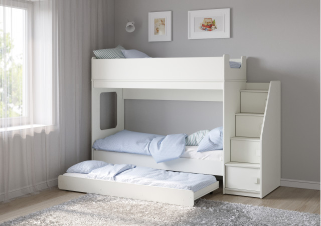 Третье спальное место 1750х750 или 1600х750 выдвижной ярус - представлен большим выкатным ящиком, спроектированным таким образом, что может быть использован и как ящик для хранения вещей, и как отдельное спальное место!