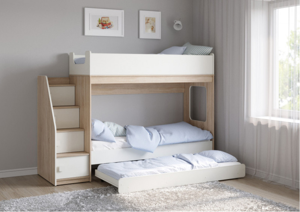 Двухъярусная кровать Легенда D602.3 с ящиком - уникальный комплект для троих детей!