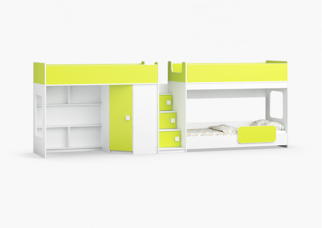 Трехъярусная кровать Легенда 43.2.5 - решение с угловым шкафом и игровой зоной для троих детей.